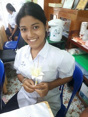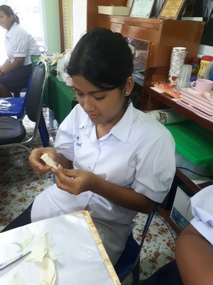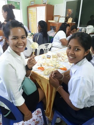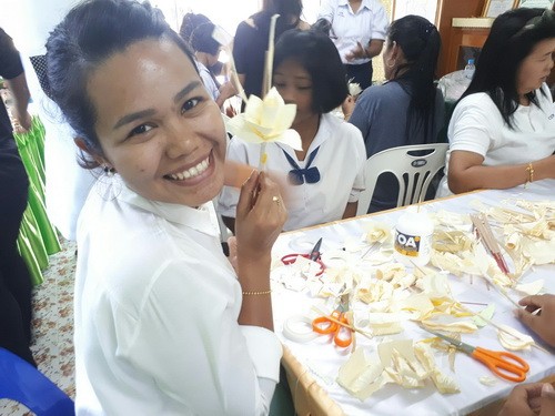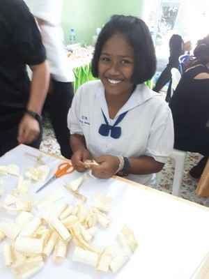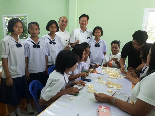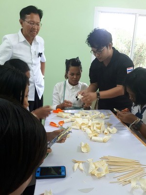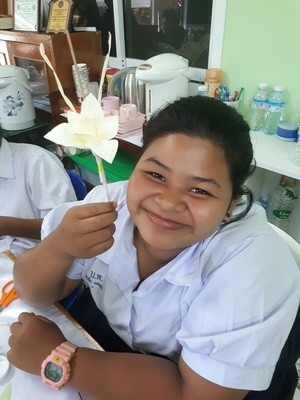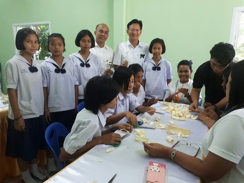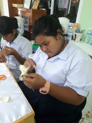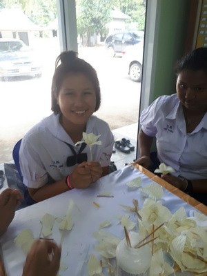 นักเรียนร่วมกันทำดอกไม้จันทร์...